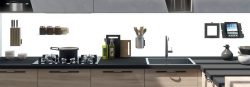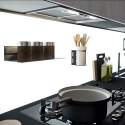 Il modello “Mia” introduce una grande novità nel mondo del design: lo schienale “magnetolab” in vetro magnetico ed illuminato, il quale produce una fonte luminosa sul piano di lavoro e rende molto più ordinati e fruibili gli utensili da cucina grazie agli accessori/contenitori magnetici: