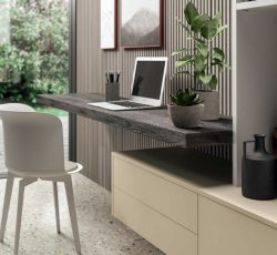 o ancora: quanto è diventato importante al giorno d’oggi creare all’interno della zona living uno spazio dedicato all’ufficio/studio? Aran pensa anche a questo, di seguito un esempio di composizione che introduce al termine di una libreria a giorno una zona studio/ufficio, anche qui possiamo notare come mantenere un’armonia tra gli ambienti aiuti a creare un legame di continuità con gli spazi della casa:
