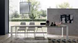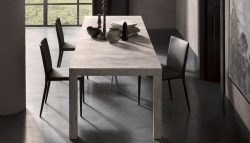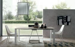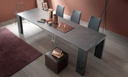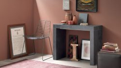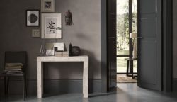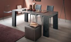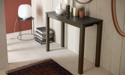 La consolle allungabile per eccellenza, ha una struttura in metallo ed un meccanismo telescopico in alluminio che permette al piano (disponibile in nobilitato, laccato, legno o effetto malta) di estendersi grazie a 3 o 5 allunghe.