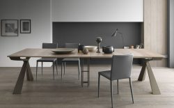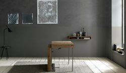 La sua struttura importante rende questa consolle protagonista dell’ambiente, acquista maggiore presenza scenica quando viene trasformata in tavolo da pranzo, solido e funzionale.