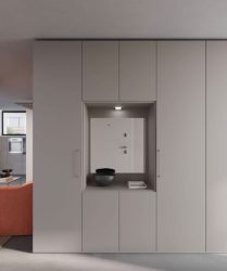 Mobili su misura che ridefiniscono lo spazio dell’ingresso, definendolo e arricchendolo di funzioni “salva spazio”