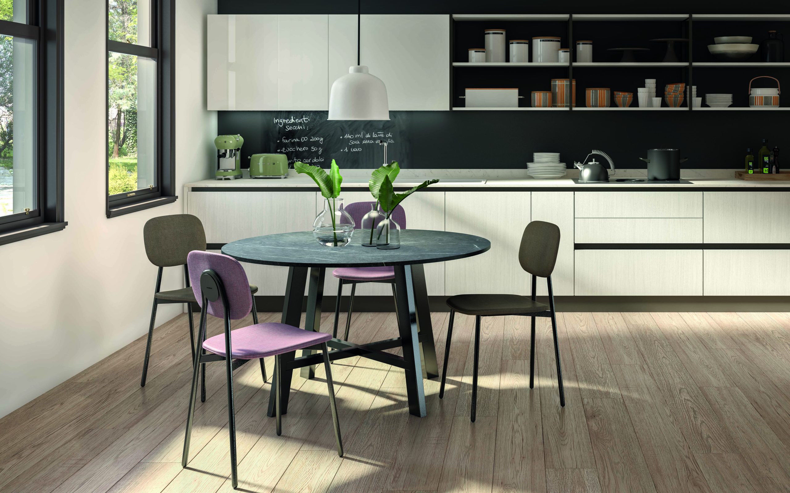 • Colori e Finiture: Una tavolozza cromatica vastissima che permette di abbinare fusti e sedute per creare contrasti decisi o armonie delicate.