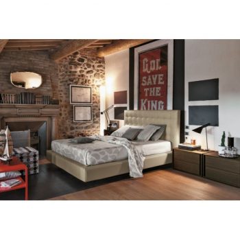 Alexander della Cattelan Italia è un letto matrimoniale imbottito con testiera capitonnè, rivestito in tessuto, pelle o ecopelle come da campionario. Rete inclusa.
