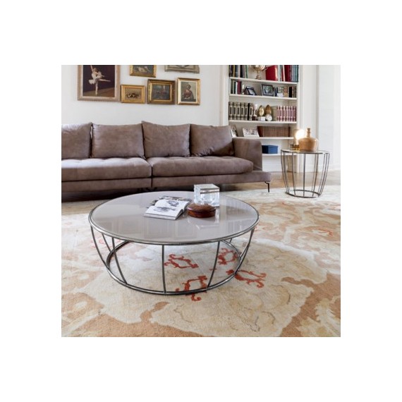 Tavolini rotondi con base realizzata con fili di metallo cromato e piano in vetro temperato. Disponibile in diverse finiture. Amburgo permette di creare delle belle composizioni da accostare per dare movimento al salotto.