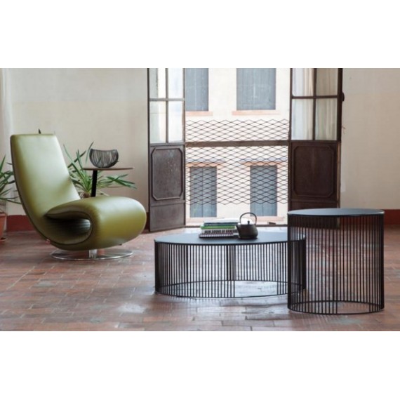 Tavolini realizzati con fili di metallo laccato per un’effetto optical innovativo e movimentato. Disponibili in tre dimensioni.