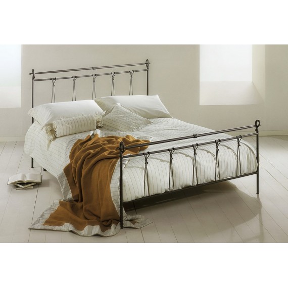 Letto in ferro battuto con particolari in ottone brunito per rete da cm. 160 x 190. Dimensioni: cm. 170 x 202, altezza testata cm. 117.