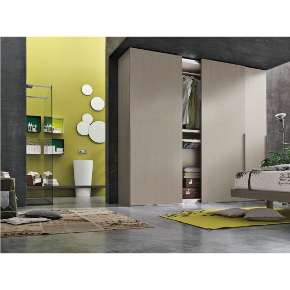 Un ambiente pieno di segreti, un volto essenziale, ma che nasconde ricerca progettuale, armadi che non cercano più di sparire, ma si mostrano con orgoglio. Superfici di grande effetto, materiali importanti che funzionano non solo da contenitori ma anche da pareti divisorie. Ricchi di attrezzature interne, sfruttano lo spazio con estrema razionalità. Finiture disponibili / Anta realizzata in tamburato, in melaminico materico bianco gesso, madreperla, o melaminico materico poro aperto bianco gesso, madreperla o melaminico materico frassino cenere. Struttura armadio in tamburato rivestito internamente in finitura sabbia, fianchi esterni in melaminico. Larghezza vano*/ 90 | 117.2 cm (liscia) / 136.2 cm (2 settori) Altezza/ 236 | 255 cm Profondità/ 67 cm * escluso fianchi e mezzerie