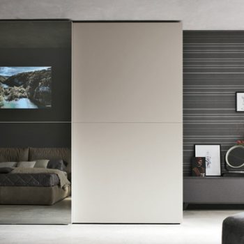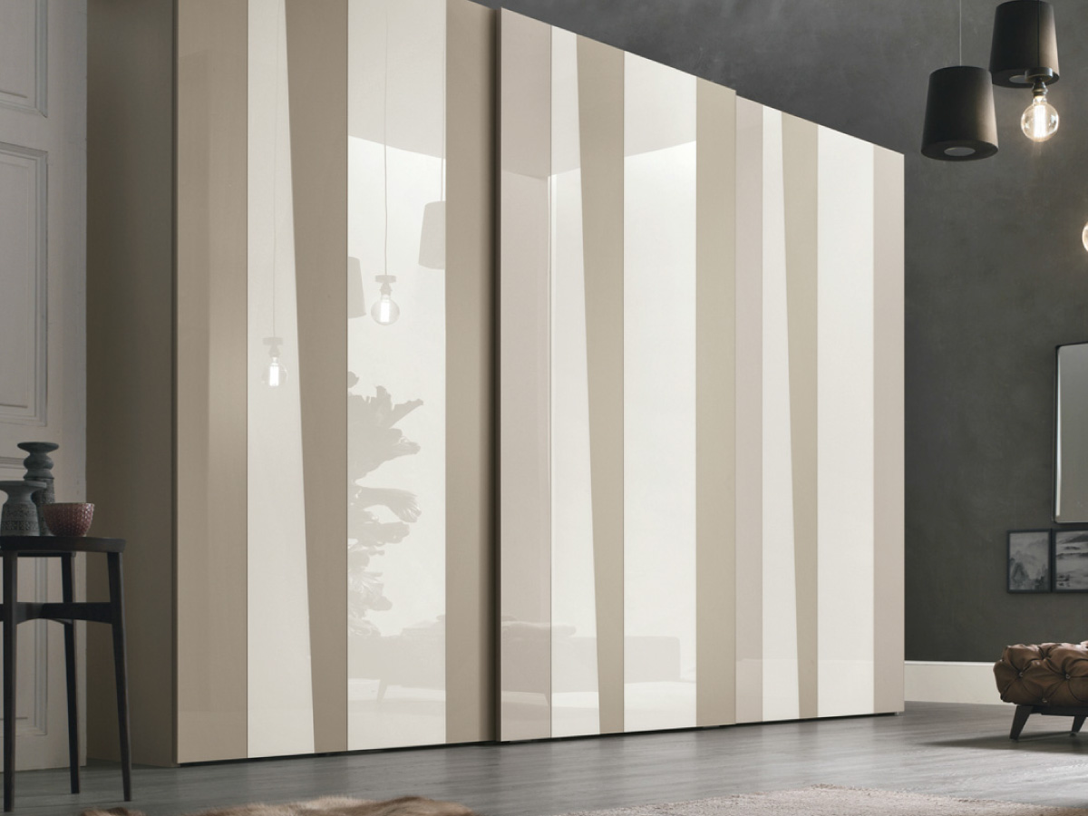 L’ armadio ad anta scorrevole Kelly, di Tomasella, usa in modo innovativo i vetri satinati e lucidi, creando soluzioni cromatiche dal look naturale e sobrio o multicolor creativo.