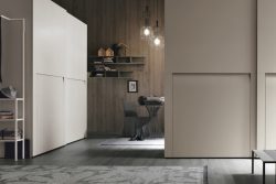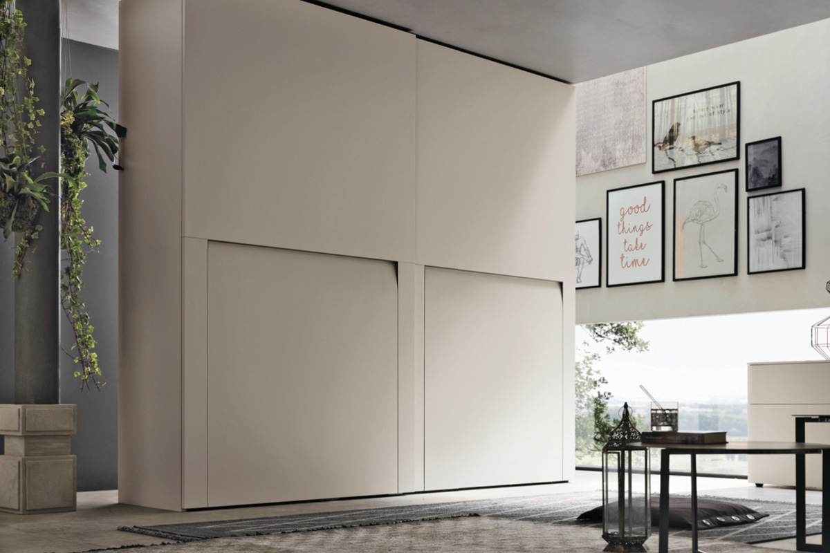 L’ armadio Kryzia è una proposta dal gusto minimalista che si caratterizza per la maniglia orizzontale ricavata nello spessore dell’ anta scorrevole, un segno molto delicato che decora l’anta di questo splendido armadio di Tomasella.