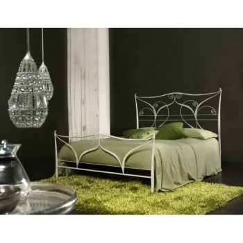 Arabesco della Cosatto è un letto matrimoniale in ferro battuto per rete da cm. 160 x 190, dimensioni d’ ingombro: cm. 175 x 202, altezza testata cm. 142