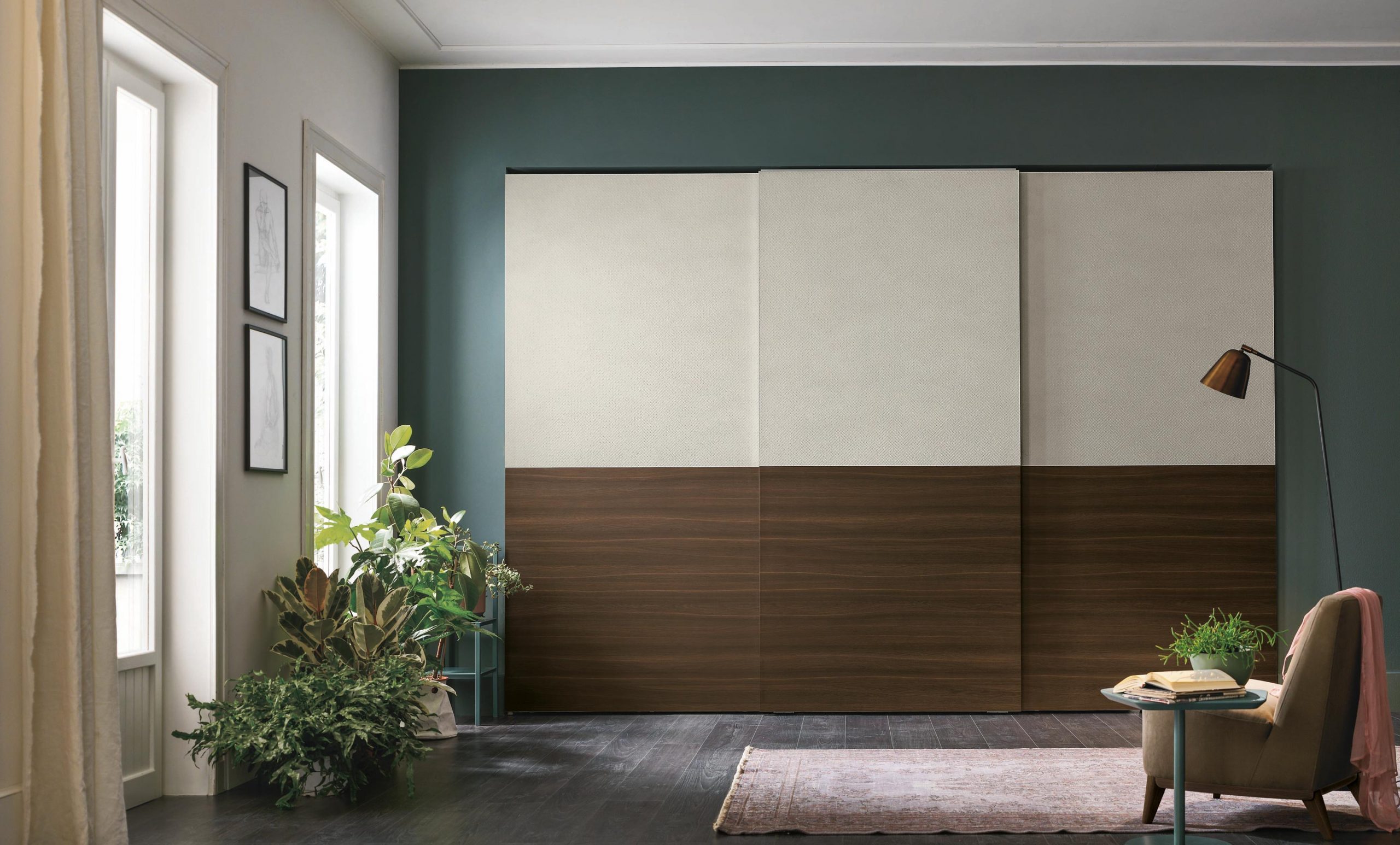 Armadio componibile anta scorrevole Double di Tomasella. E’ nella sua semplicita’ ed eleganza un classico nelle varianti proposte da Tomasella. Il contasto tra i pannelli permette comunque di personalizzarlo a seconda delle esigenze di accostamento con altri elementi della zona notte.