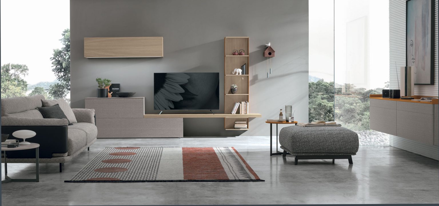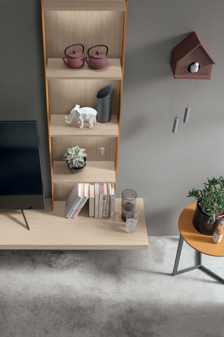 Le pareti attrezzate moderne Tomasella, sono le più originali in commercio: il modello Atlante UNIT_AT119 in fotografia, impreziosisce i tuoi spazi.