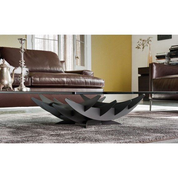 Atlas della Cattelan Italia è un tavolino da salotto con base in acciaio verniciato graphite, silber met, bianco o nero. Piano in cristallo trasparente.