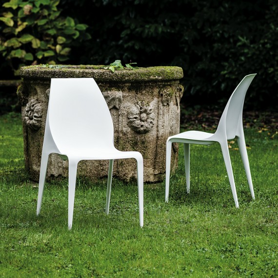 Beluga della Cattelan Italia è una sedia impilabile in polipropilene bianco. Anche per uso esterno.