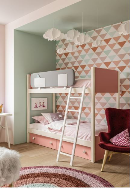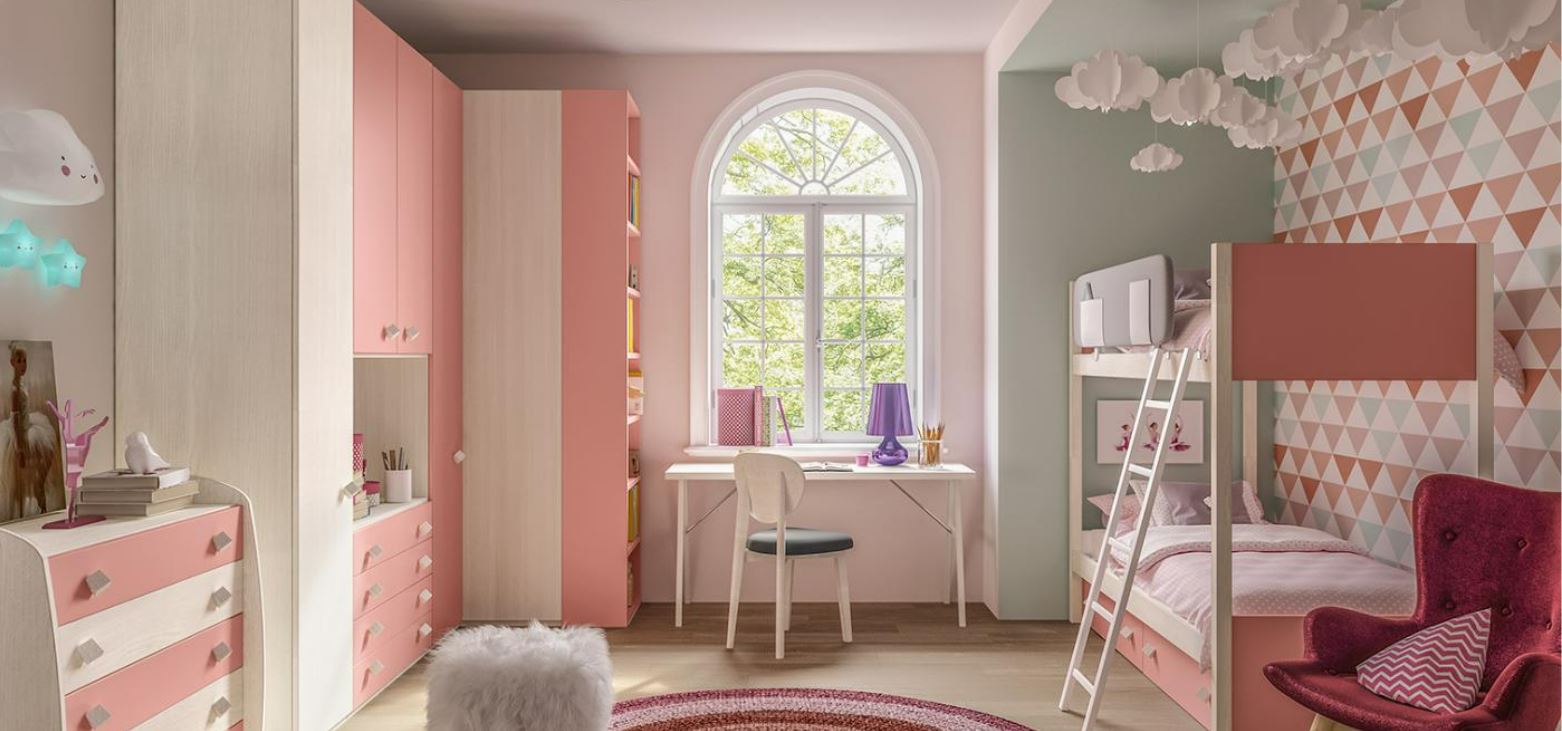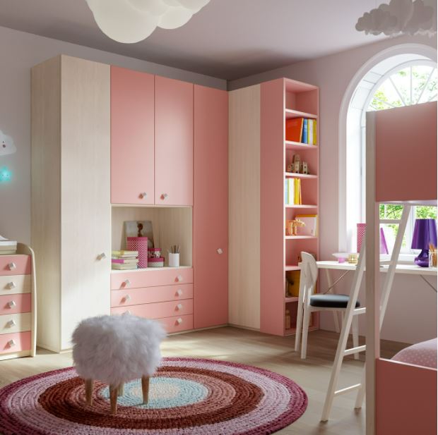 La linea TOP delle camerette per ragazzi firmate Giessegi è caratterizzata dall’ampia modularità e fornisce proposte complete che esprimono funzionalità e gusto, come ad esempio nel modello CM2017, dove la composizione con il letto a castello viene associata al modulo dell’ampia scrivania, della libreria/armadio angolare molto capiente ed il mobile a cassettiera.