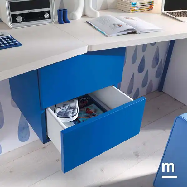 Crea una postazione di lavoro confortevole e funzionale nella cameretta con le soluzioni proposte da Moretti Compact – AF CASA DESIGN ROMA, zona Eur Ardeatino. Una scrivania adatta alle esigenze dei ragazzi, una piccola libreria e una cassettiera offrono un valido supporto allo studio. L’ambiente è completato da due pouf Kubo in ecopelle cristallo. Un modo intelligente di progettare la zona studio per i giovani, disponibile presso Moretti Compact – AF CASA DESIGN ROMA, zona Eur Ardeatino.