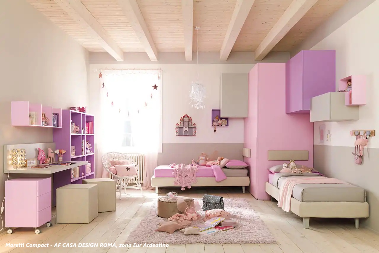 L’eleganza è il filo conduttore di questa cameretta con due letti sommier ai lati della cabina armadio, disponibile da Moretti Compact – AF CASA DESIGN ROMA, zona Eur Ardeatino. Le testate tradizionali sono sostituite da pannelli imbottiti Tetris in pelle color perla, che definiscono con stile contemporaneo e raffinato la posizione dei cuscini. Un tocco di design unico che puoi trovare da Moretti Compact – AF CASA DESIGN ROMA, zona Eur Ardeatino. Chiama il 06/88970570 per scoprire i dettagli.