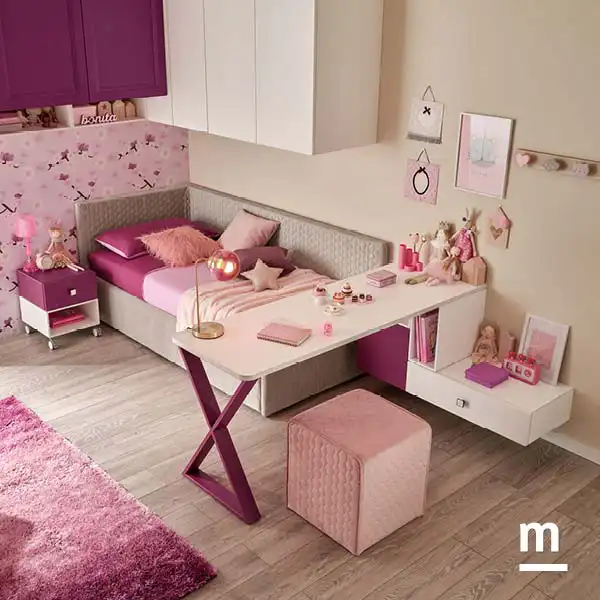 Quando lo spazio a parete non è sufficiente, la cameretta Vogue, offerta da Moretti Compact – AF CASA DESIGN ROMA, zona Eur Ardeatino, propone una soluzione ingegnosa: una scrivania a penisola. Il lato lungo si estende armoniosamente verso il centro della stanza, creando un’area studio ben definita. Il piano della scrivania è dotato di angoli arrotondati, pensati per garantire la massima sicurezza nella cameretta dei ragazzi. Il sostegno centrale “Ten” è il risultato di una progettazione razionale, un dettaglio che testimonia l’attenzione al particolare di Moretti Compact – AF CASA DESIGN ROMA, zona Eur Ardeatino.