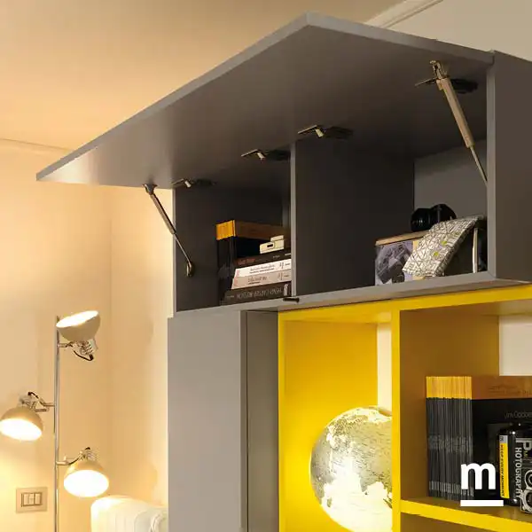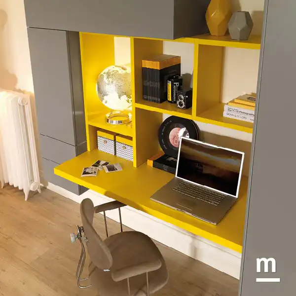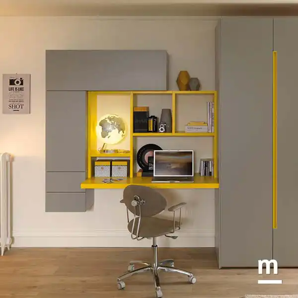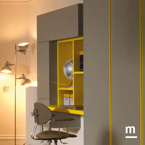 La zona studio è uno spazio vitale nella cameretta, e Moretti Compact – AF CASA DESIGN ROMA, zona Eur Ardeatino, propone soluzioni belle e luminose, ideali sia per lo studio che per il lavoro. I wallbox affiancano l’armadio e incorniciano una piccola libreria Outline. Il piano scrivania, interamente laccato e trattato con uno strato protettivo UV, garantisce resistenza e vivacità dei colori. L’apertura basculante dei wallbox in altezza rende facile e comodo l’accesso, contribuendo a un ambiente ordinato e funzionale.