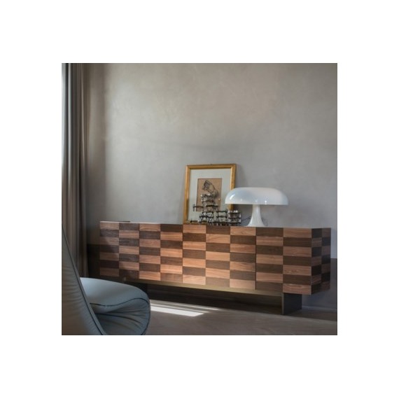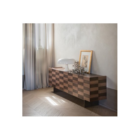 Credenza realizzata tramite una particolare procedura di intarsio laser . Decoro semplice ma raffinato che va in abbinamento al tavolo Colosseo per non lasciare nulla al caso.