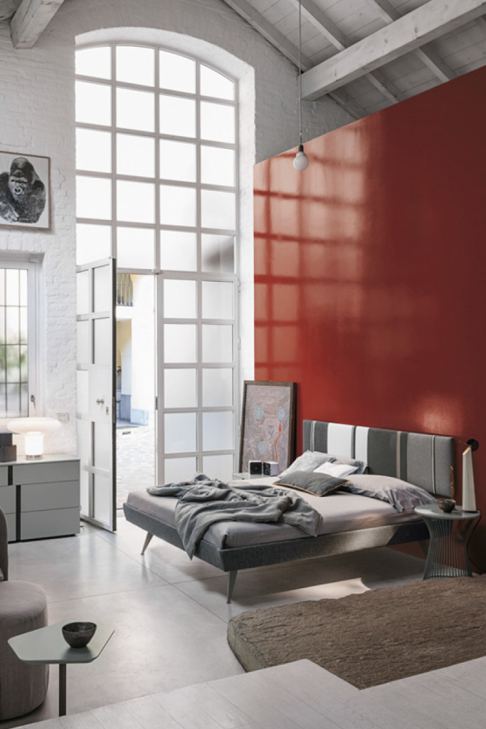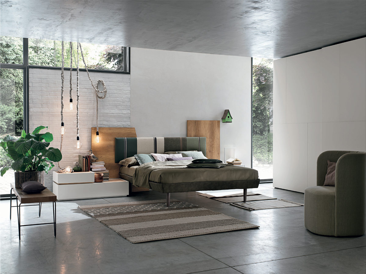 Il letto matrimoniale Diagonal, di Tomasella, è un letto moderno con testiera imbottita disponibile in più finiture e in diverse tipologie di struttura del letto.