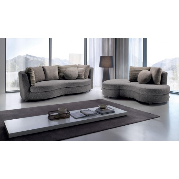 Curve, linee sinuose, morbidezza: questo in tre parole è Bolero. Un divano che come una conchiglia ti accoglie con eleganza. Coordinato al divano, il pouf ellittico che ti permette di giocare con le forme ricurve.