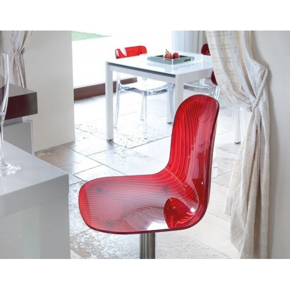 Sgabello girevole con base in acciaio, scocca in stirene acrilo nitrile. Regolabile in altezza con meccanismo a gas.