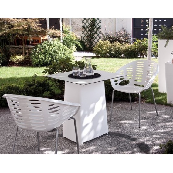 Materiale Tavolo snack quadrato o rettangolare con forma stondata. Struttura in polietilene realizzato con tecnologia rotazionale. Piano in laminato stratificato. Polietilene riciclabile. Adatto per uso esterno. In dotazione su richiesta diversi dispositivi di illuminazione (unicamente per la versione in polietilene traslucido)