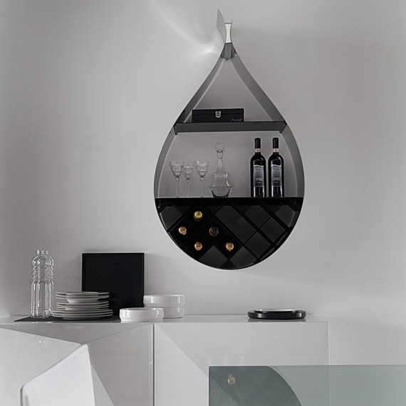 Drop della Cattelan Italia è una libreria/portabottiglie a muro in acciaio verniciato graphite, bianco o nero opaco o in acciaio inox lucido con griglia e ripiano verniciati bianco, nero o graphite opaco.