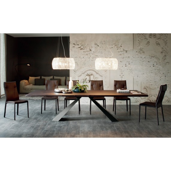 Eliot Wood della Cattelan Italia è un tavolo fisso con base in acciaio verniciato goffrato bianco, nero, graphite o inox satinato.