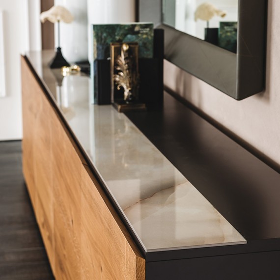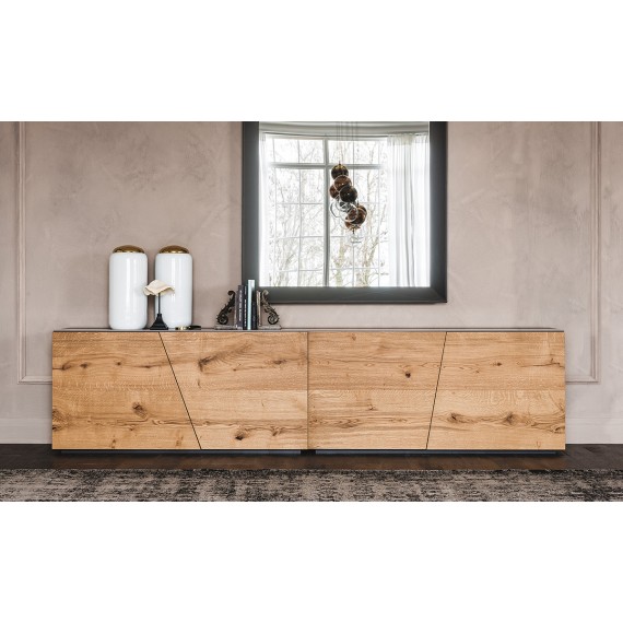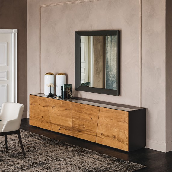 Explorer della Cattelan Italia è una madia moderna con 2 o 4 ante. Struttura e top verniciati graphite o bianco opaco e ante in noce Canaletto, rovere bruciato, rovere Heritage o struttura, top e ante laccate bianco lucido. Top disponibile anche con inserto in ceramica Marmi nei colori Calacatta, Alabastro o Ardesia. Ripiani interni in cristallo trasparente.