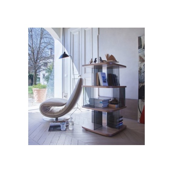 Libreria in vetro curvato. Utilizzabile come liberia o vetrina è semplicemente elegante e facile da inserire in ogni ambiente. Disponibile in diverse finiture.