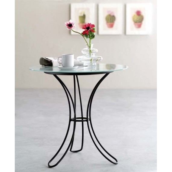 TAVOLINO FIOCCO TONDO in ferro con piano in vetro temprato satinato da 6mm o disponibile in vetro dipinto bianco.