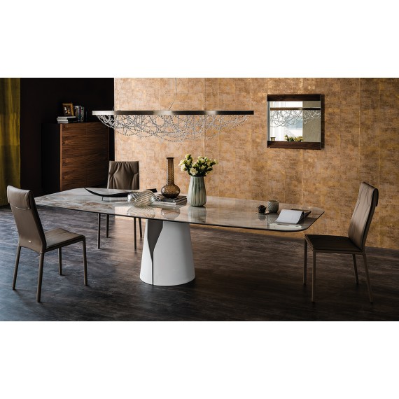 Giano Keramik della Cattelan Italia è un tavolo fisso con base in acciaio verniciato goffrato bianco, nero o graphite.