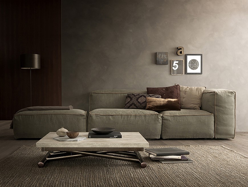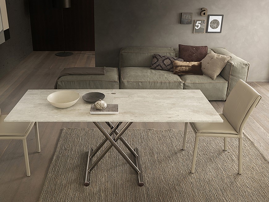 Gingillo, della Altacom Italia, è un tavolino da salotto che in sole due mosse diventa il doppio della lunghezza, trasformandosi in tavolo da pranzo.