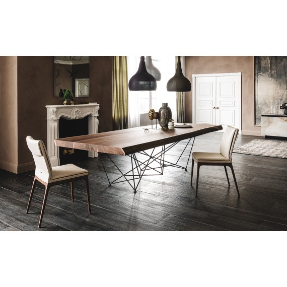 Gordon Deep Wood della Cattelan Italia è un tavolo fisso con base in acciaio verniciato trasparente, goffrato bianco, nero o graphite.