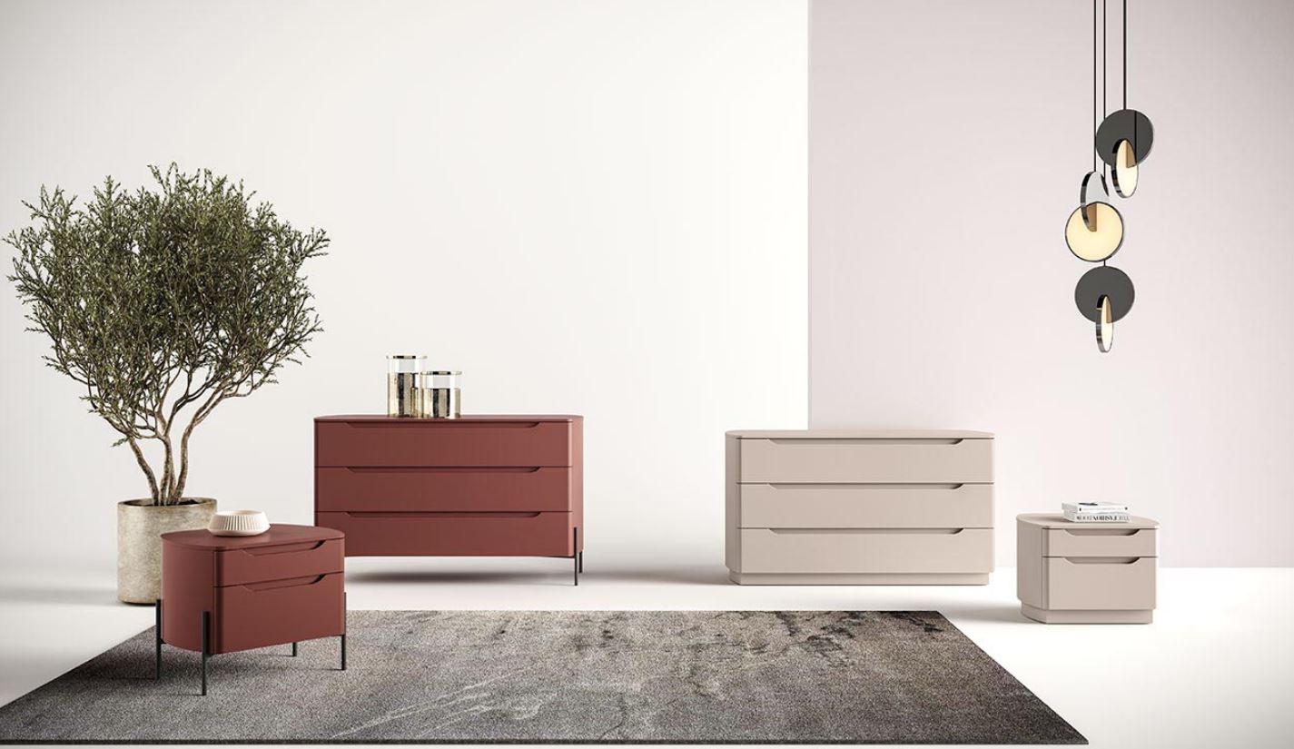 Il gruppo letto Ambra, prevede due comodini ed un settimino, in due versioni (come da foto) una che prevede appoggio a terra con piedini ed uno senza.