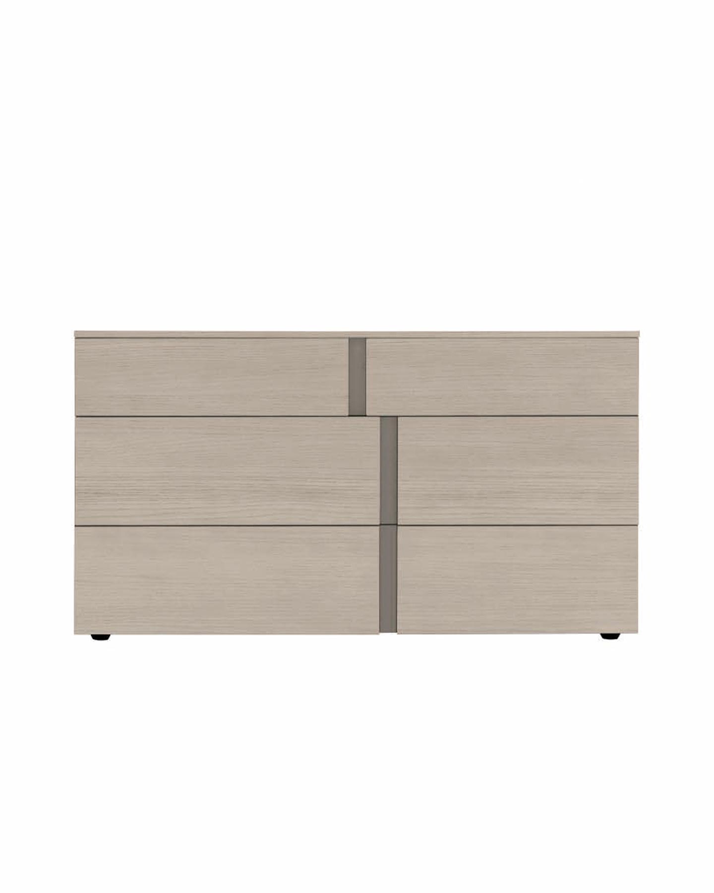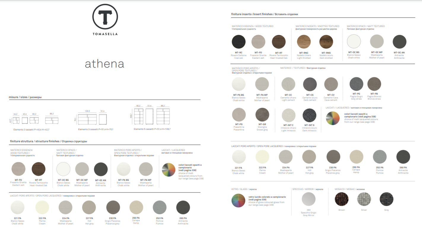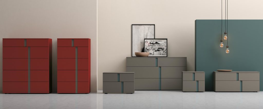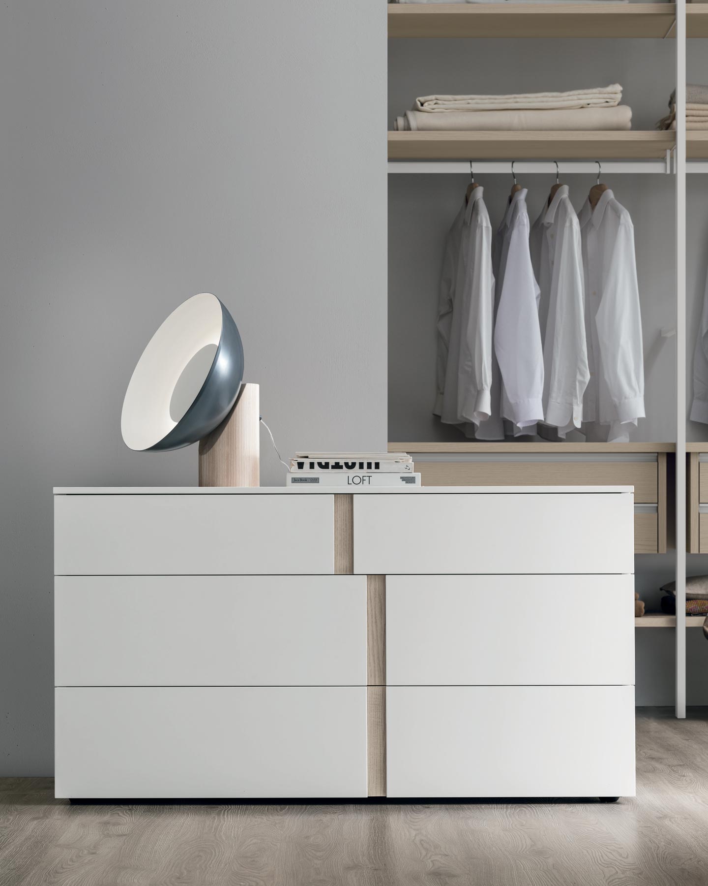 Contrasti e armonia tra forma e colore. La nuova collezione di mobili contenitori di Tomasella per la camera da letto Athena è caratterizzata dalla maniglia a gola verticale che crea segni grafici bicolore. Mobili retrofiniti. Possibilità di aggiungere kit luci.
