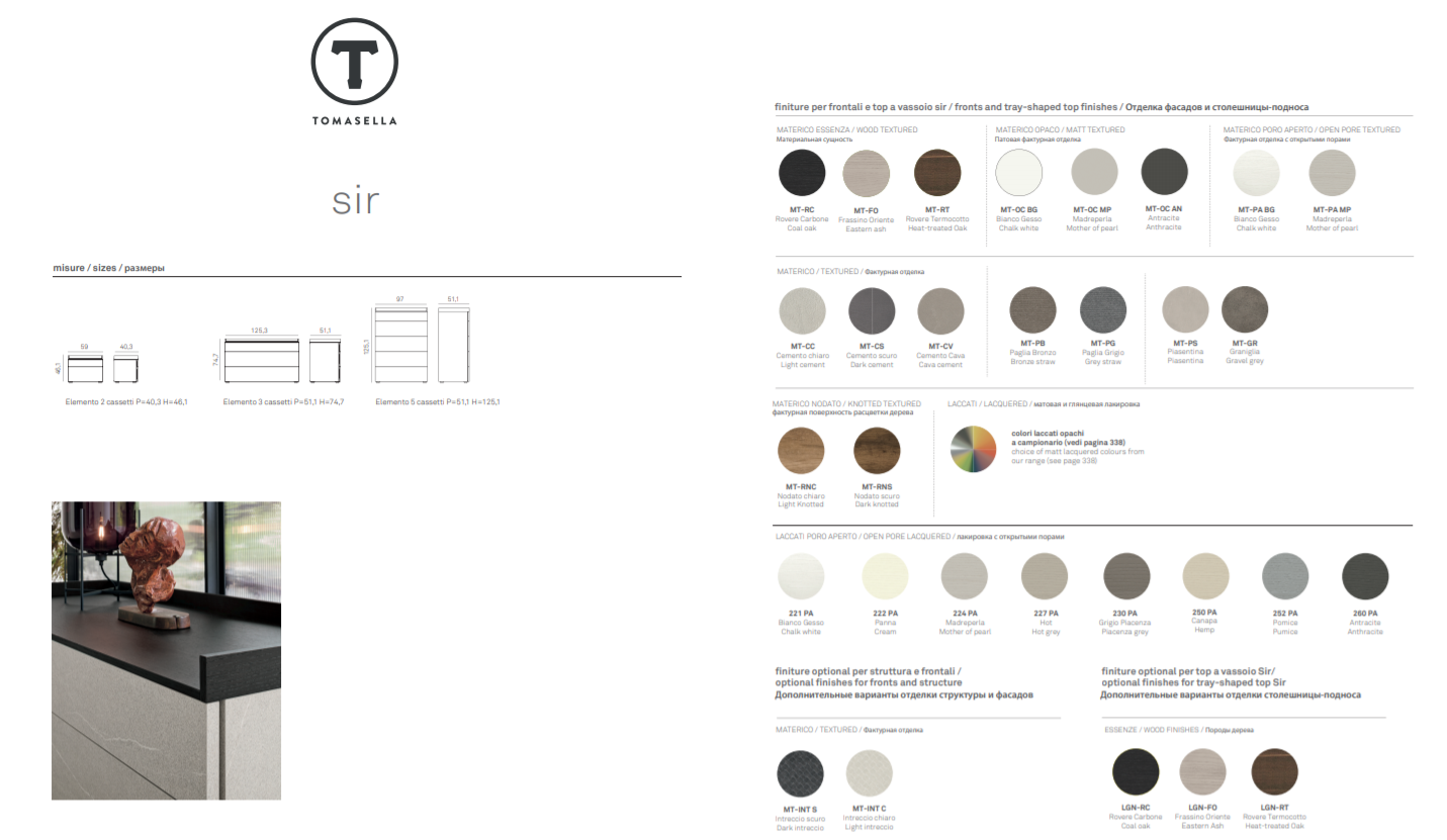 Finiture per frontali e top vassoio: materico essenza / materico opaco / materico poro aperto / materico / materico nodato / laccati poro aperto