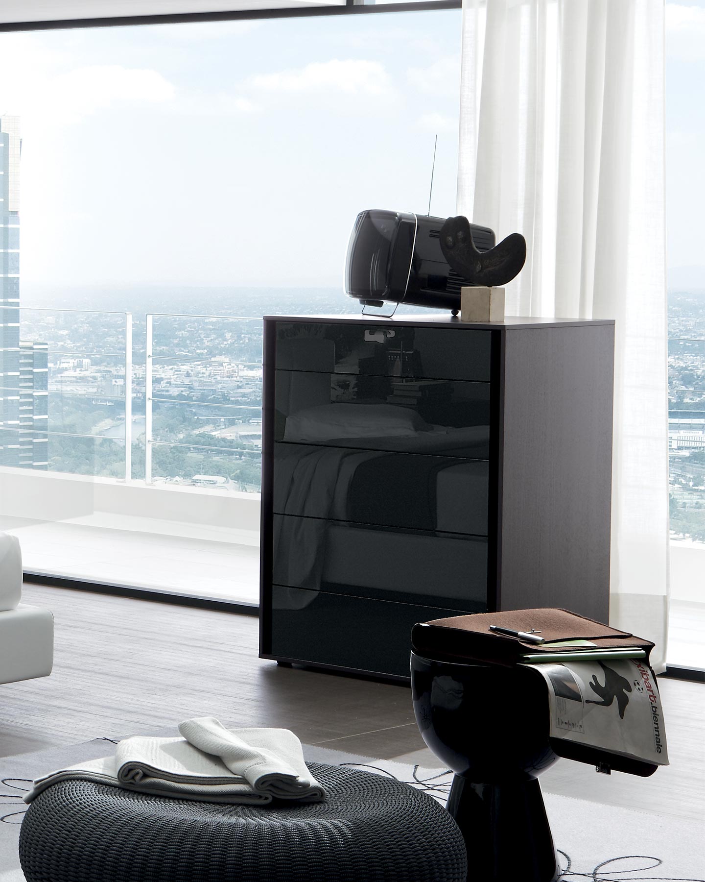 Il gruppo letto di design Vip Cristal, di Tomasella, unisce rigore formale e immaginazione dando vita ad un mix ben calibrato tra essenza di legno e vetro.