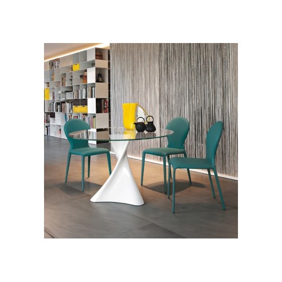 Tavolo tondo con base in agglomerato di marmo e piano in vetro temperato. La Defense è perfetto per chi vuole rendere eleganti anche gli spazi più piccoli dell’ambiente domestico.