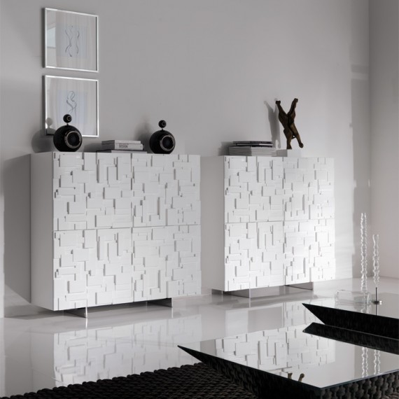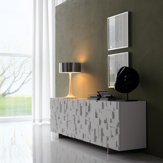 Labyrinth della Cattelan italia è una madia contenitore moderna in legno e ante in poliuretano laccato bianco o graphite opaco. Piedini in acciaio inox, verniciati bianco o graphite opaco. Ripiani interni in cristallo trasparente. Cassetto interno nelle versione a 3 ante.