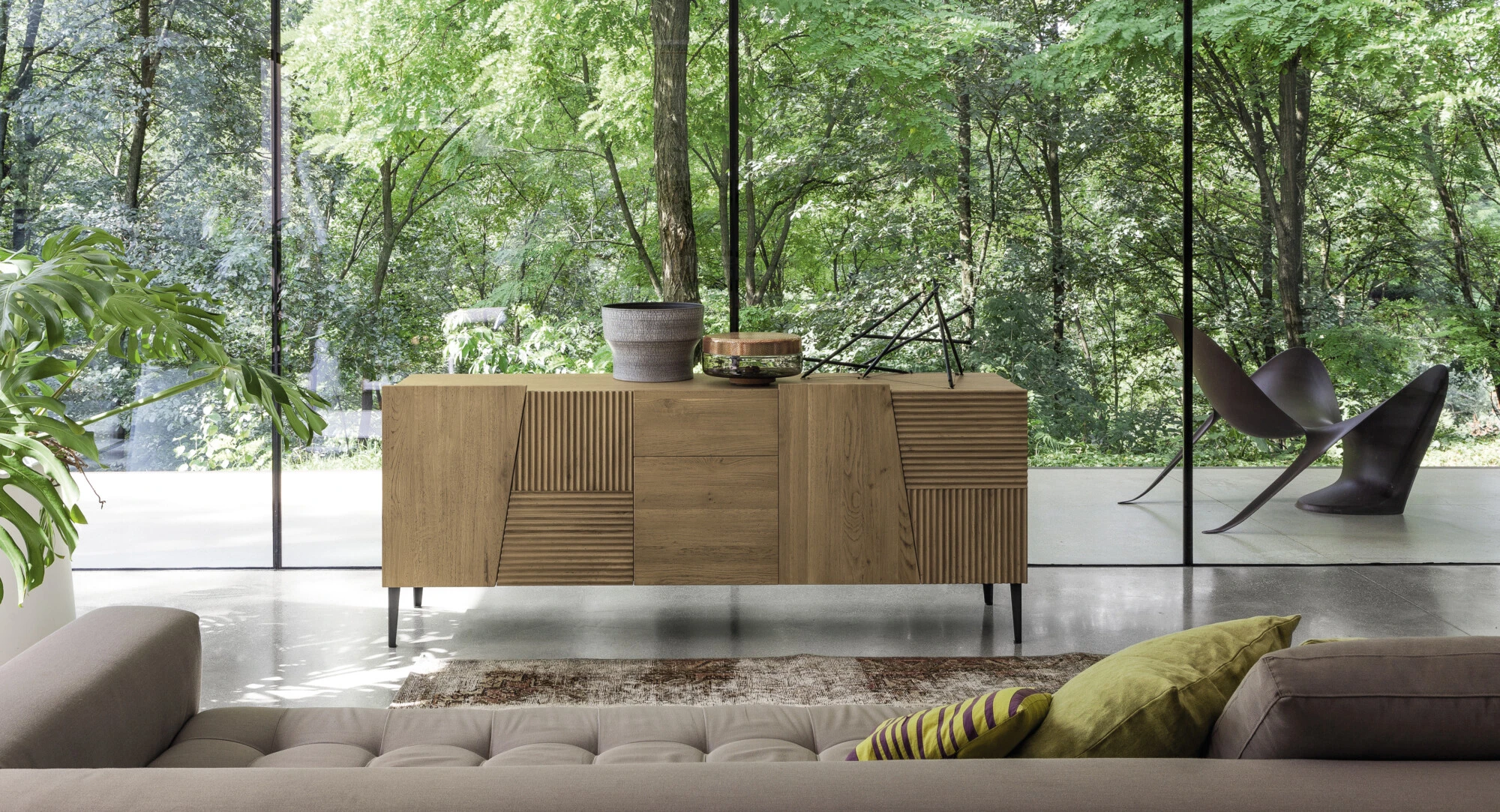 Le madie Devina Nais reinterpretano la tradizione del mobile in legno con un design rivoluzionario. L’attenzione ai dettagli materici, come la lavorazione cannettata, e i giochi di luce e ombra, esaltano l’unicità del materiale. La funzionalità si unisce all’estetica, con mobili contenitori che custodiscono gli oggetti quotidiani con stile.