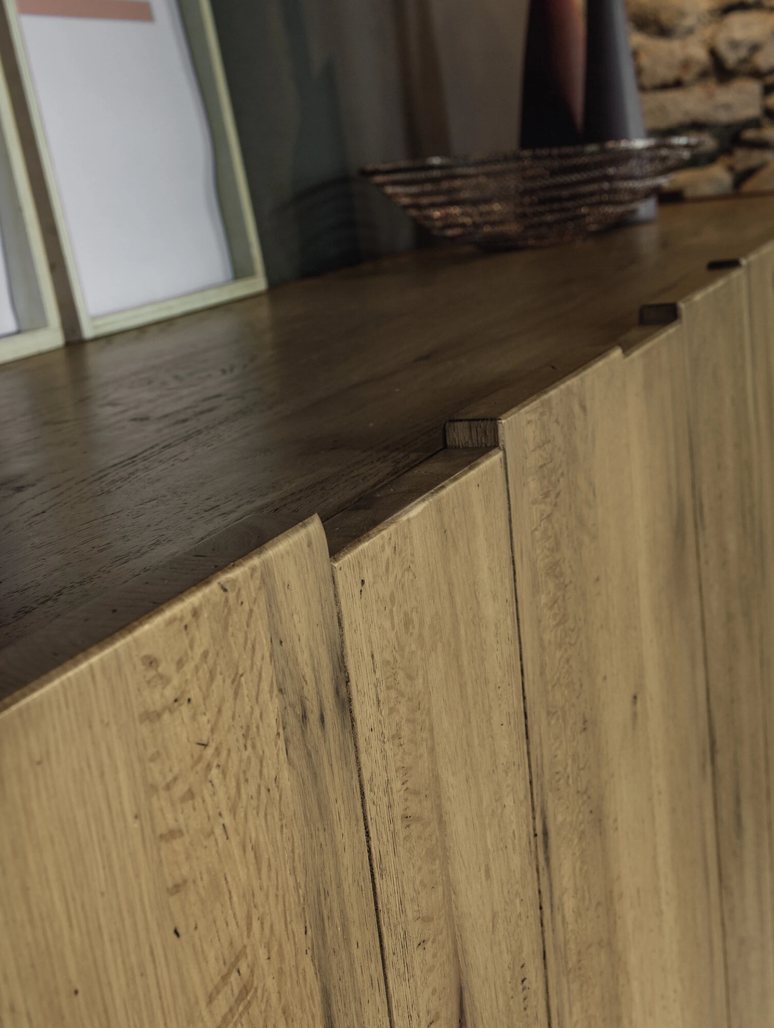 Le madie Devina Nais reinterpretano la tradizione del mobile in legno con un design rivoluzionario. L’alternanza asimmetrica delle altezze sul profilo superiore e la finitura Holand Naturale della madia Urban Ranch creano un aspetto naturale e accattivante.