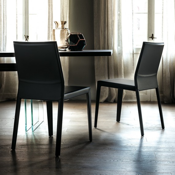 Margot della Cattelan Italia è una sedia con telaio in acciaio completamente rivestita in cuoio come da campionario.