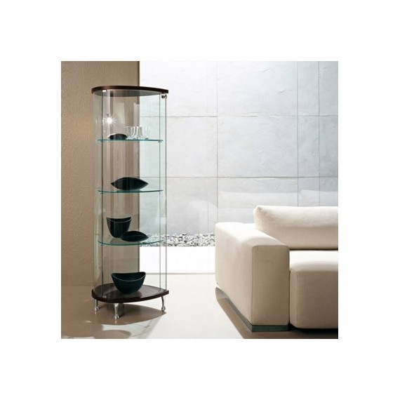 Vetrina in legno con ante e schienale in vetro curvato. Disponibile in diverse finiture e con faretto. Ispirata ad una goccia d’acqua, Olivella è pensata per dare ancora più valore alla cristalleria.