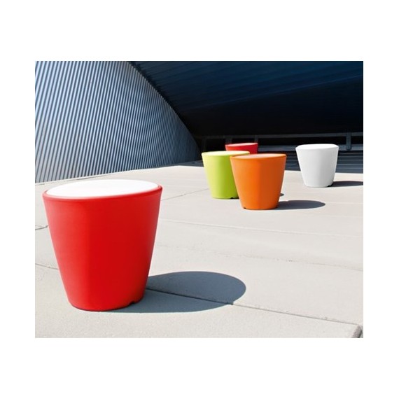 Materiale Vaso/contenitore in polietilene realizzato con tecnologia rotazionale. Utilizzabile come pouf o tavolino con l’aggiunta di cuscino o piani opzionali. Materiale riciclabile, adatto per uso esterno. In dotazione su richiesta sistema di drenaggio e diversi dispositivi di illuminazione (unicamente per la versione in polietilene traslucido).
