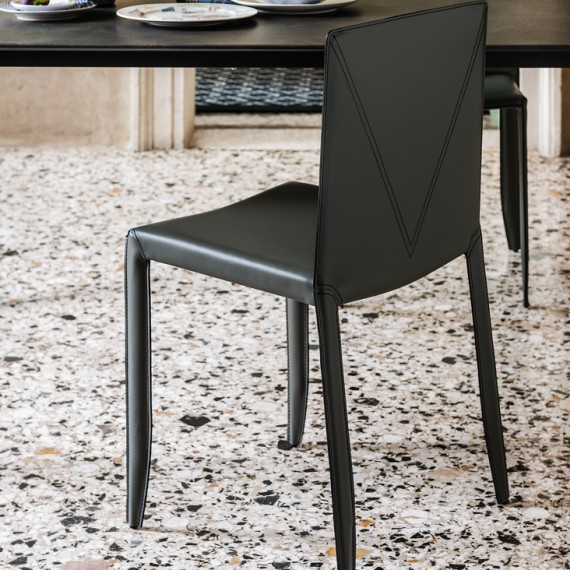 Piuma della Cattelan Italia è una sedia superleggera con o senza braccioli e struttura in acciaio, rivestita in cuoio come da campionario. Cuciture standard.