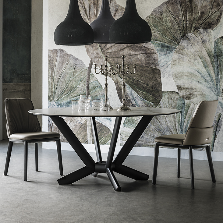 Tavolo tondo Planer Keramik Round, di Cattelan Italia, realizzato con base in acciaio verniciato goffrato titanio, bronzo, graphite o nero, Brushed Bronze o Brushed Grey.
