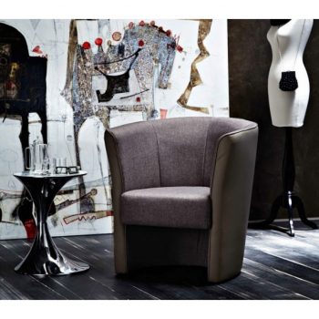 Round è una poltrona dalle forme avvolgenti,di proporzioni importanti ma estremamente calibrate, che danno un forte senso di accoglienza. Può essere rivestita in tessuto o pelle e nella particolare versione ”mix” con tessuto e pelle insieme; disponibile con l’elegante basamento in legno Eucalipto.
